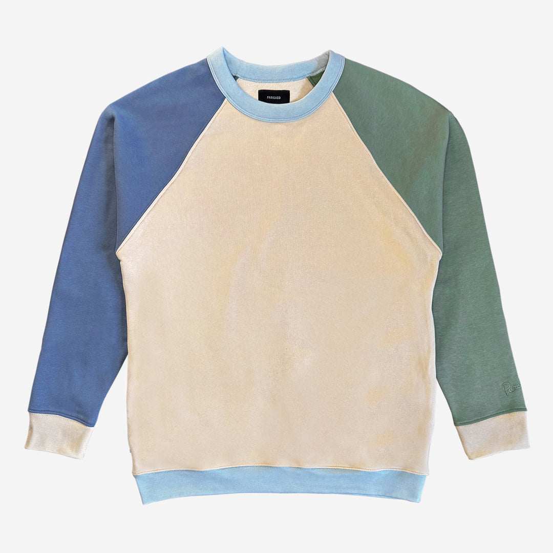 Parched Color Block Pocket Crew Neck Sweatshirt - Sea Glass