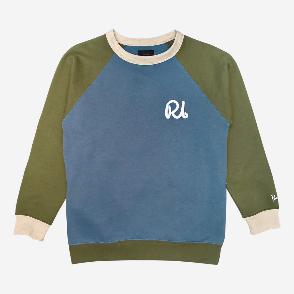Parched Color Block Pocket Crew Neck Sweatshirt - Mossy Blue